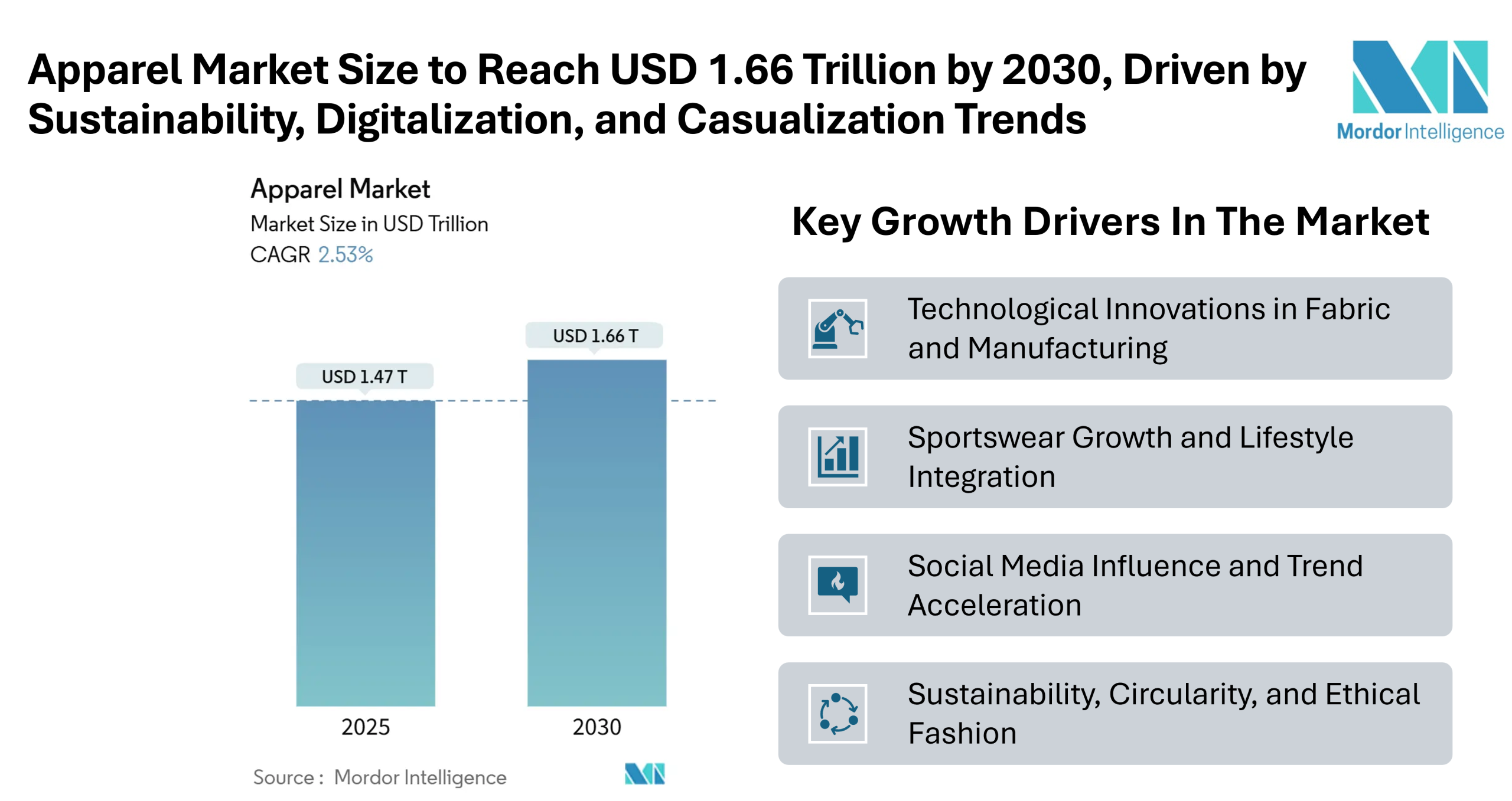 Home Press ReleasesApparel Market Size to Reach USD 1.66 Trillion by 2030, Driven by Sustainability, Digitalization, and Casualization Trends